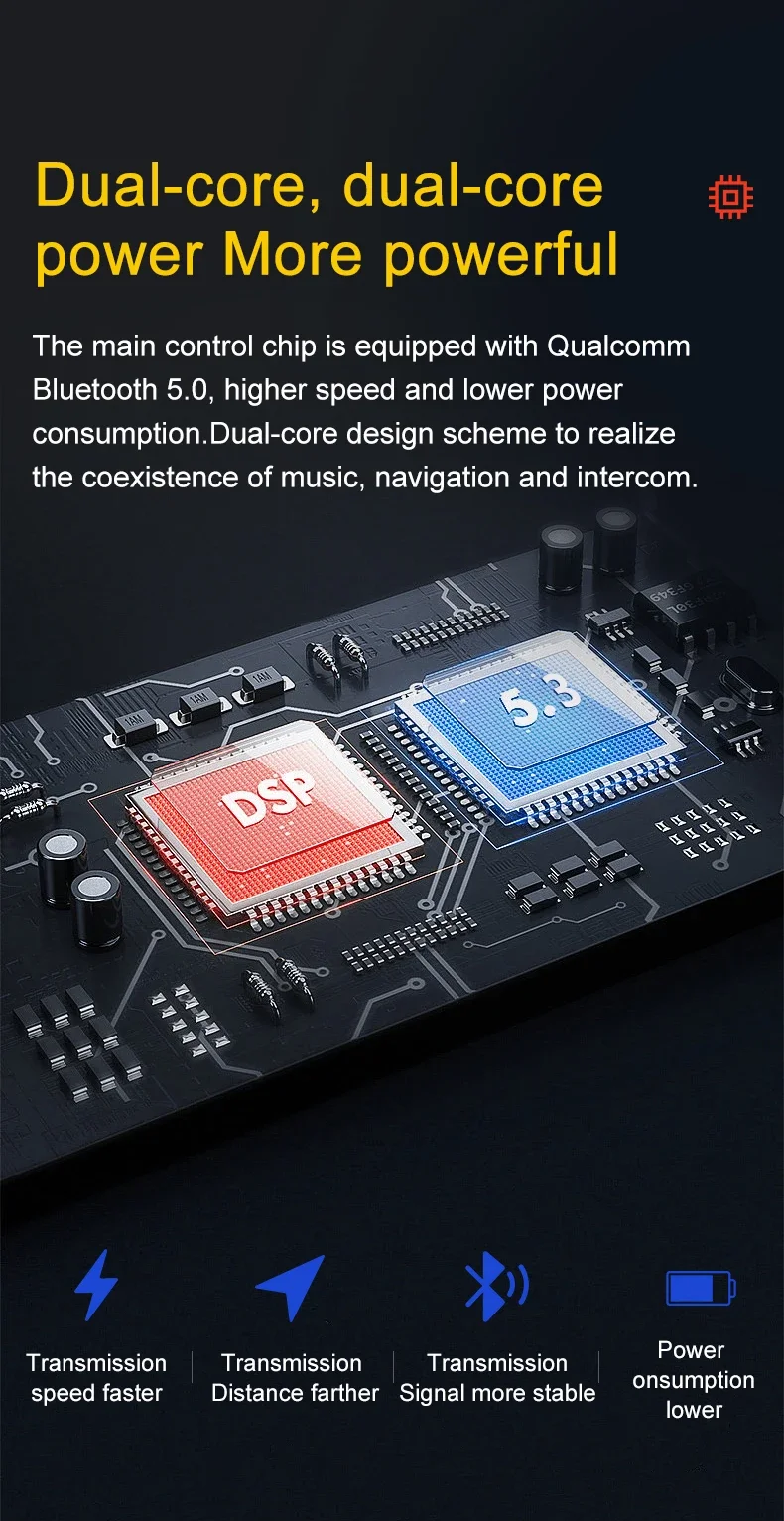 Experimente a comunicação motociclista definitiva com o intercom Bluetooth para capacete Q58-MAX. Este intercom Bluetooth permite intercomunicação clara e partilha de música em tempo real entre dois motociclistas, até 500 metros de distância e a velocidades até 120 km/h. Equipado com Bluetooth 5.3, um ecrã LCD intuitivo, rádio FM e uma lanterna integrada, este intercom Bluetooth é a combinação perfeita de funcionalidade e conveniência. O microfone destacável 2 em 1 adapta-se a qualquer capacete, e a tecnologia de redução de ruído garante som cristalino em chamadas e música. Com uma bateria que oferece até 10 horas de uso, este intercom Bluetooth é o companheiro ideal para viagens longas, mantendo-o ligado, entretido e em segurança na estrada.