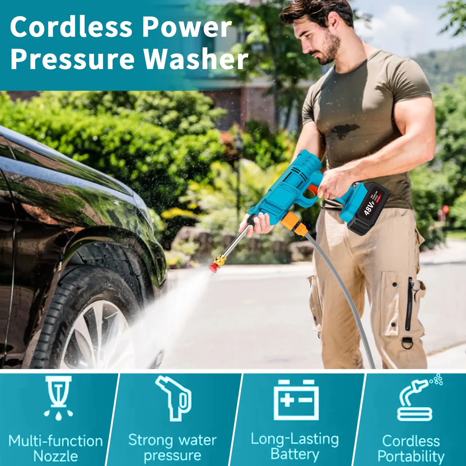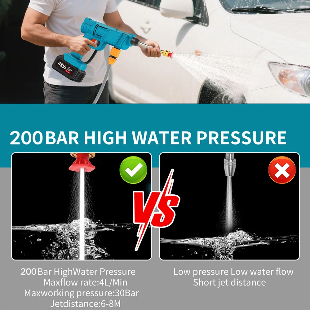 Apresentamos a Pistola de Alta Pressão Portátil 200BAR 2500W, a solução definitiva para limpeza poderosa e autônoma. Equipada com uma bateria de íon-lítio de 12.000mAh e motor de 2500W, ela oferece desempenho de lava-jato profissional com a portabilidade de uma ferramenta sem fio, perfeita para limpar veículos, fachadas, equipamentos e muito mais.