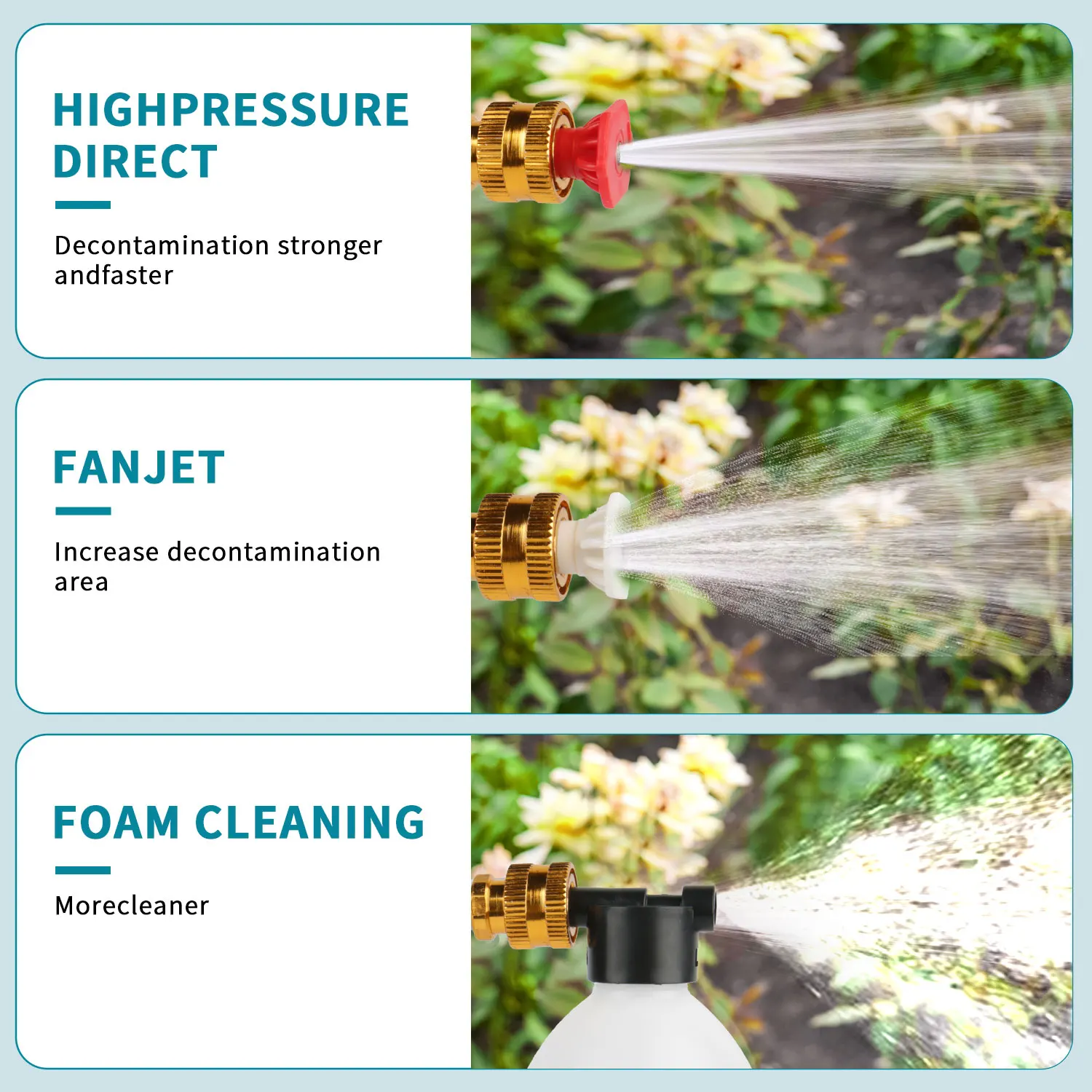 - Bocais Multifuncionais (2 Inclusos): Inclui bocal de jato ajustável para variar entre limpeza concentrada (0°) e enxágue amplo, além de um bocal específico para aplicação de espuma/detergente.