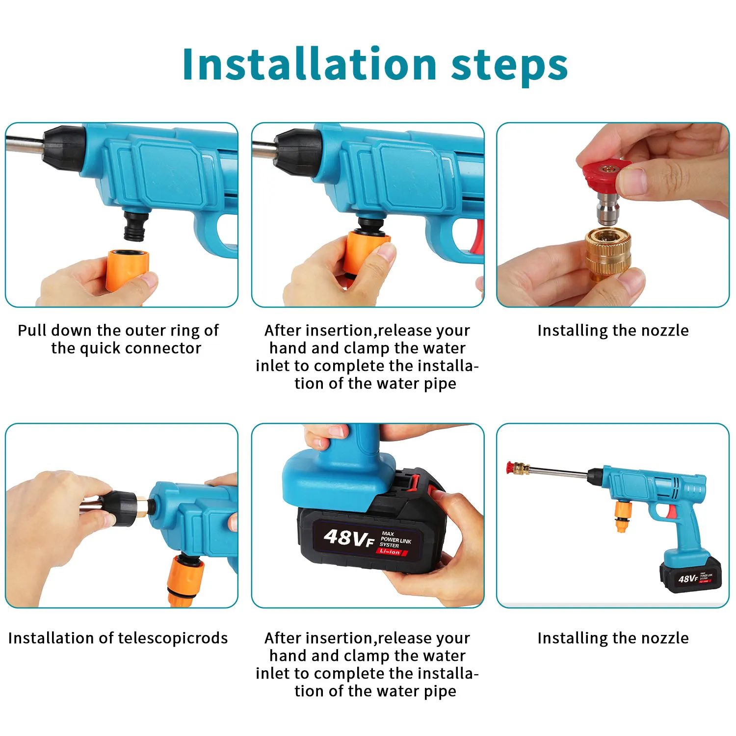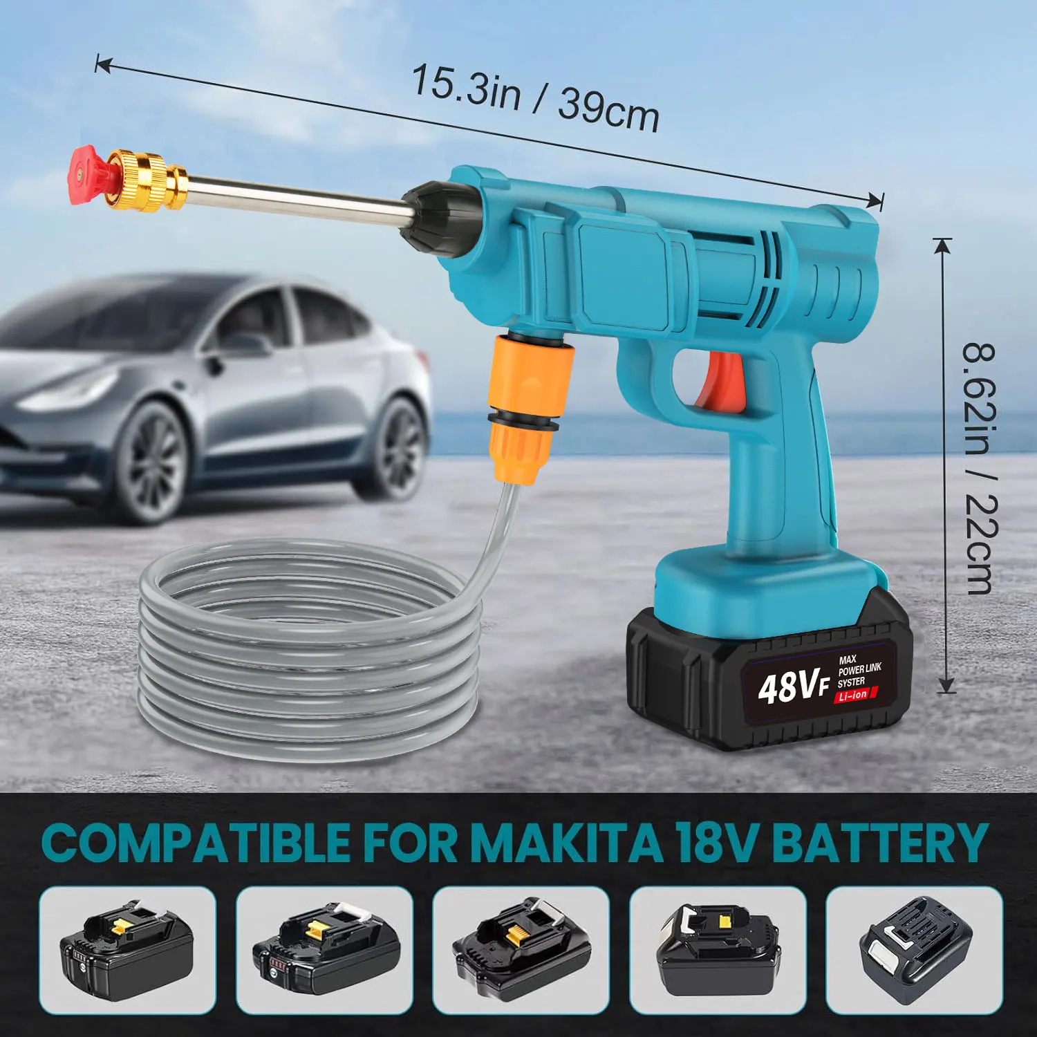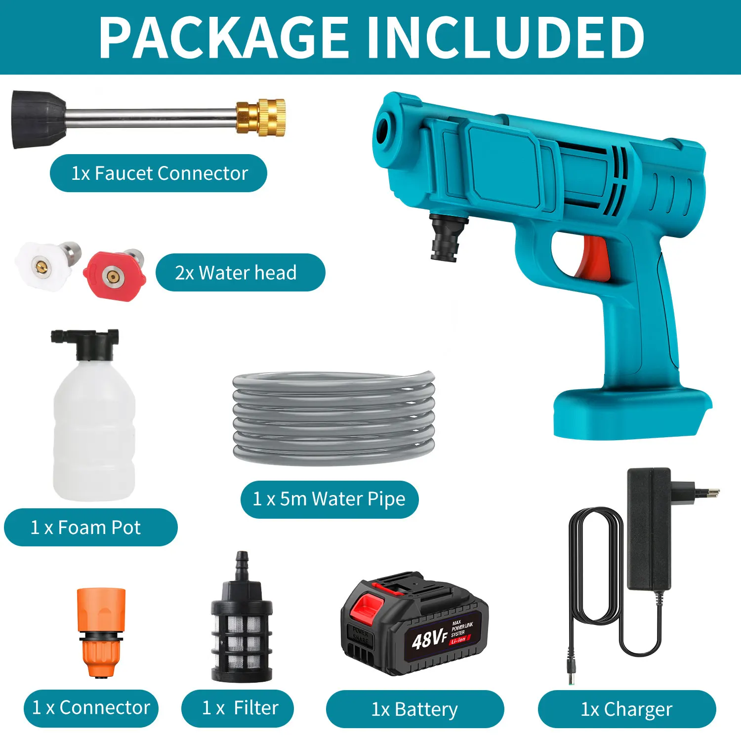 - Bateria de Longa Duração 12.000mAh: Fornece 20 a 60 minutos de uso contínuo (dependendo da pressão utilizada) com uma única carga, suficiente para múltiplas tarefas de limpeza.