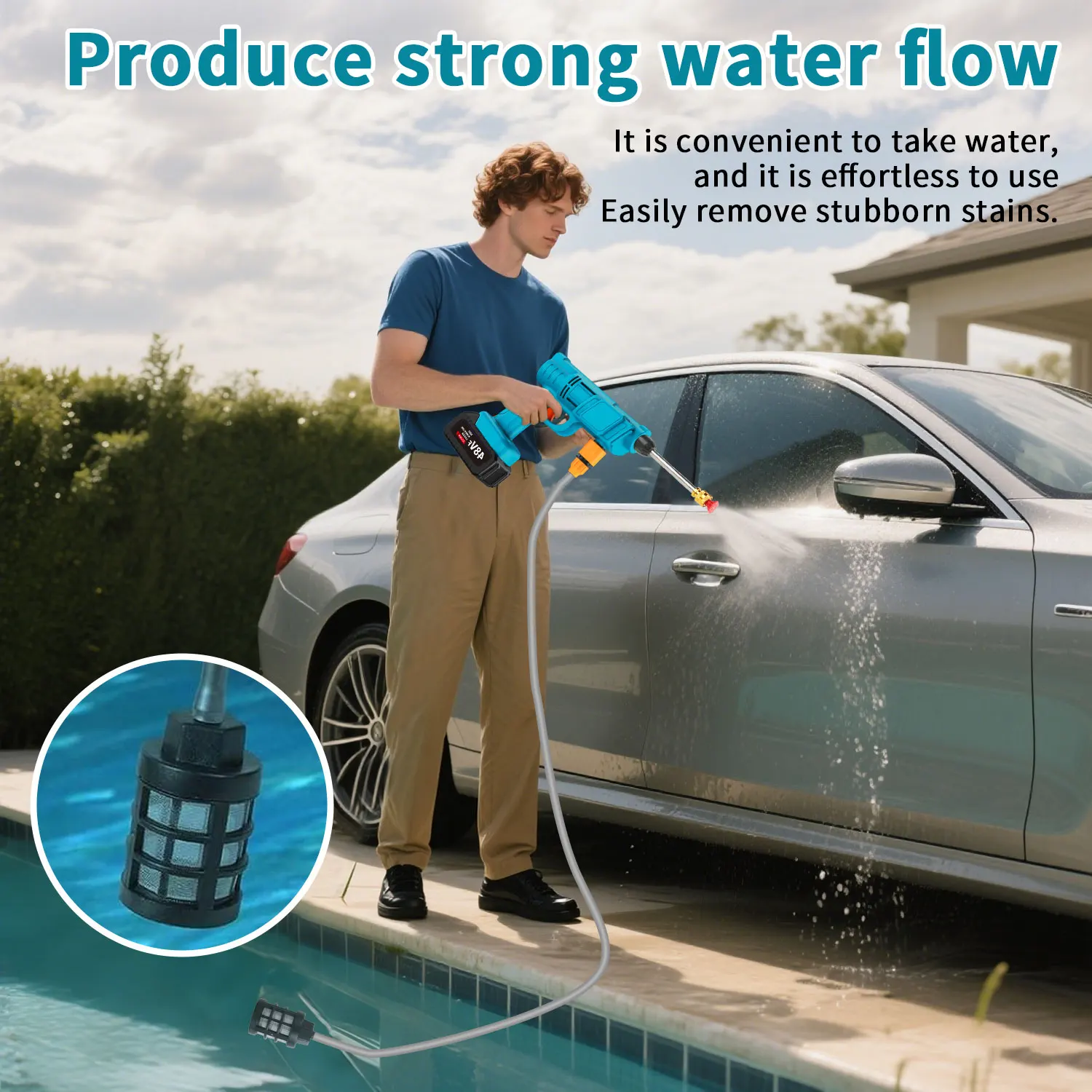 - Mangueira de Sucção de 5 Metros com Filtro: Permite utilizar água de baldes, tonéis, poços ou riachos, oferecendo liberdade total em locais sem torneira. O filtro integrado protege a bomba de impurezas.