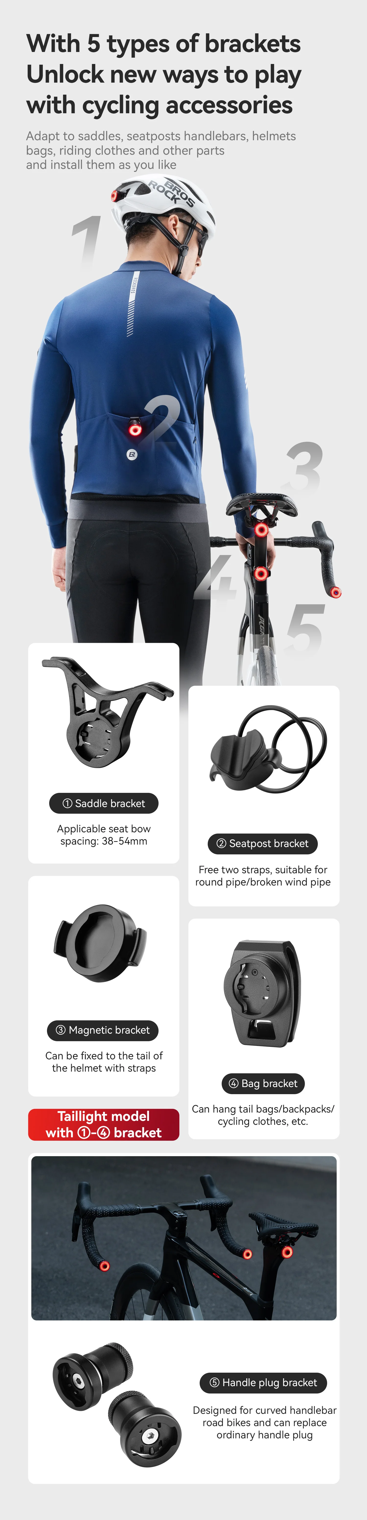 Luz para Bicicleta ROCKBROS R0 - Smart Brake, Sensor de Travão e Vibração, USB-C, 24g, para Selim ou Guiador
