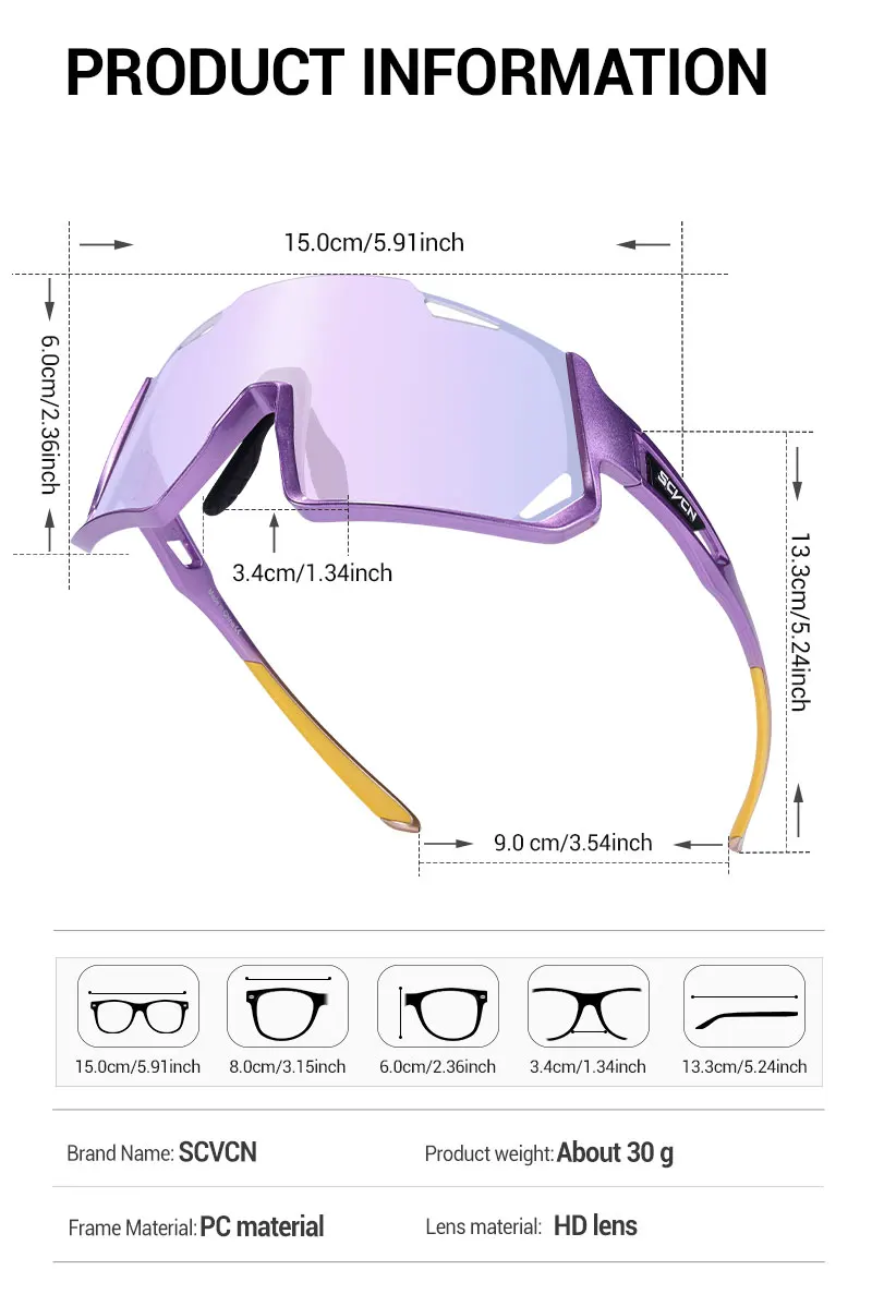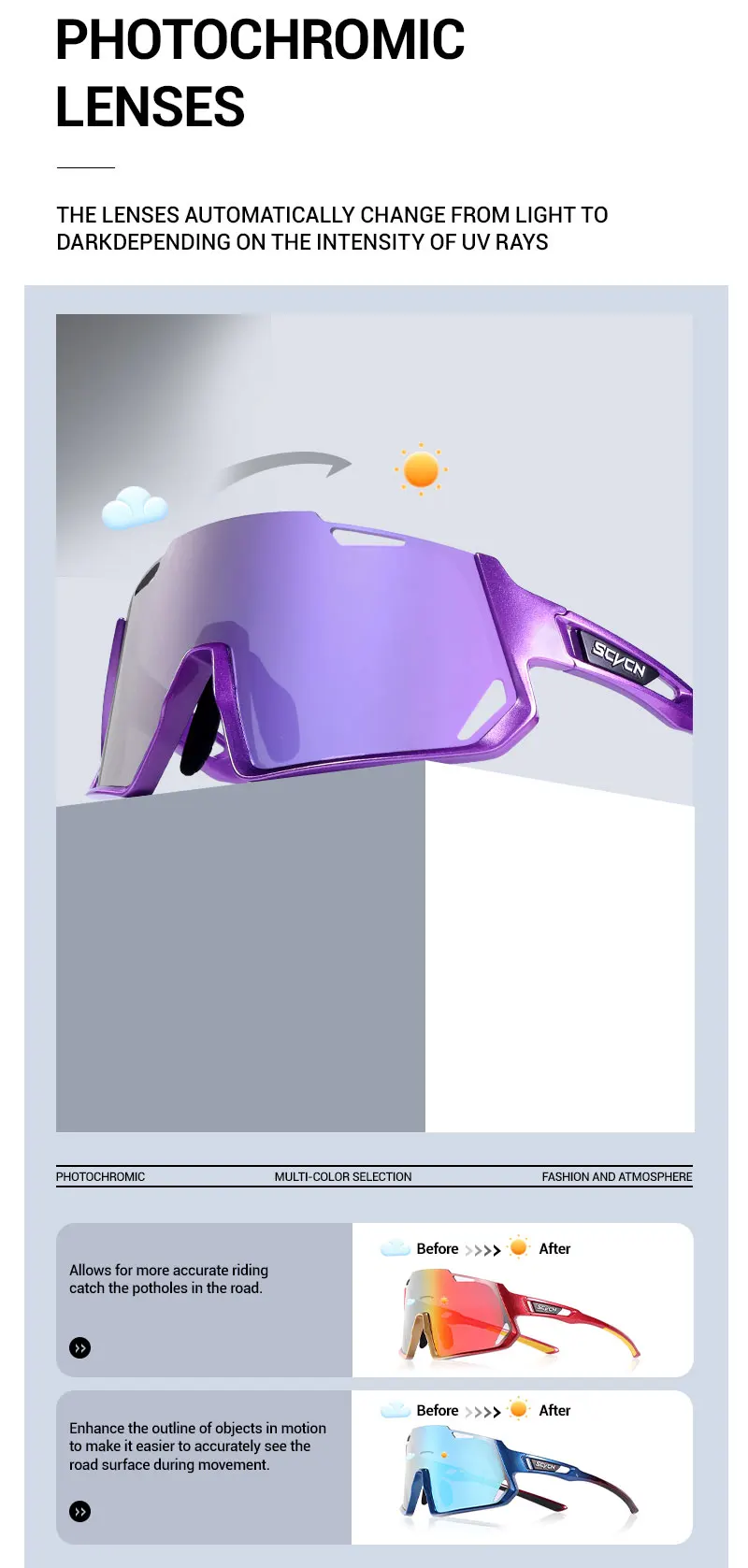 - Design Versátil e Moderno: A armação leve TR-90 e as lentes que mudam de cor oferecem um estilo dinâmico, adequado para ciclismo, jogging, caminhadas e outros desportos.