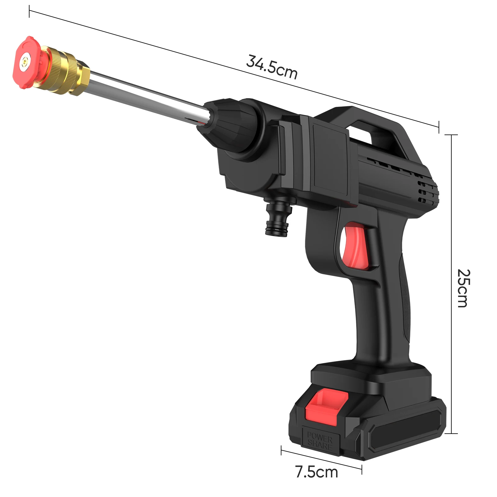 - Alcance Eficaz de 2-3 Metros: Jato concentrado para limpeza eficiente de carros, motos, bicicletas, pisos, grades e móveis de jardim.