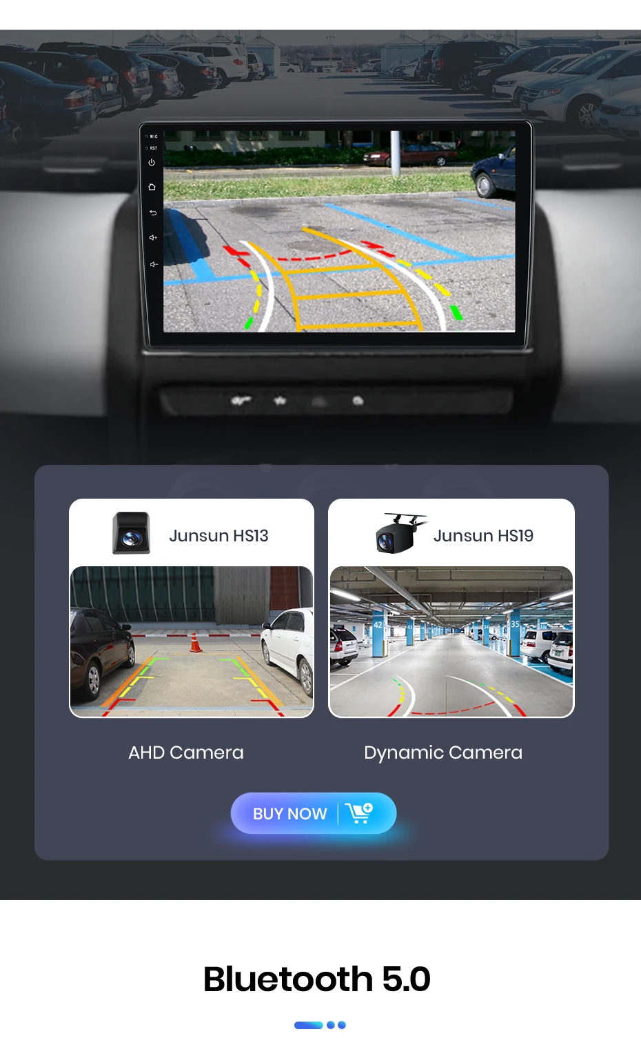 - Suporta câmera de ré original ou após-mercado.