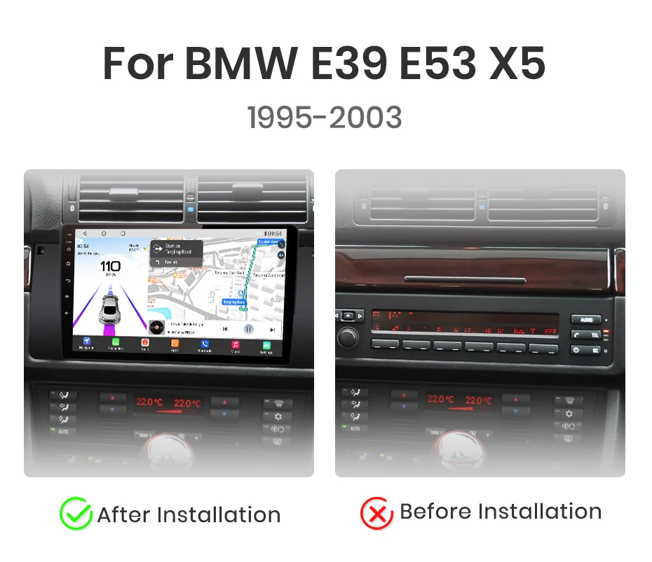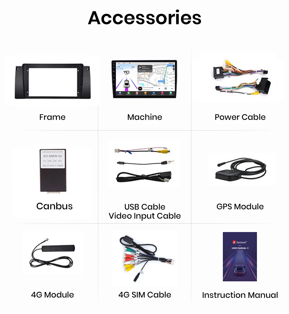 Rádio Android Junsun XT89 Qualcomm 8-Core para BMW E39 E53 - Câmera 360° Panorâmica, Wireless CarPlay, Android 13, 4GB RAM, 128GB ROM e Garantia de 3 Anos