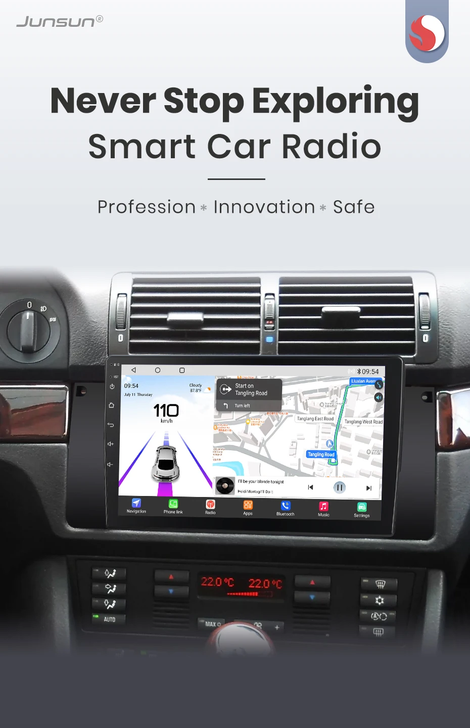 Junsun car navigation system, equipped with a QLED screen boasting a 1280*720P resolution. Unlike traditional displays,