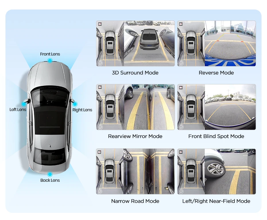 The entire car is equipped with 4 cameras,enabling a 360° fill- view image.