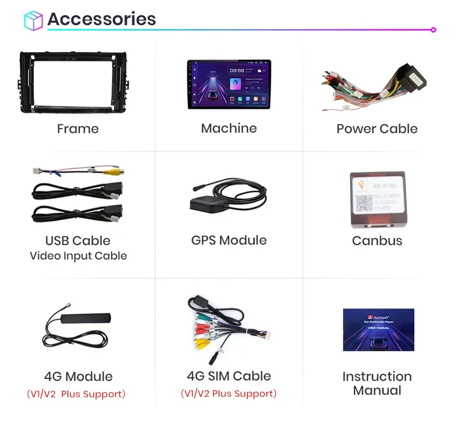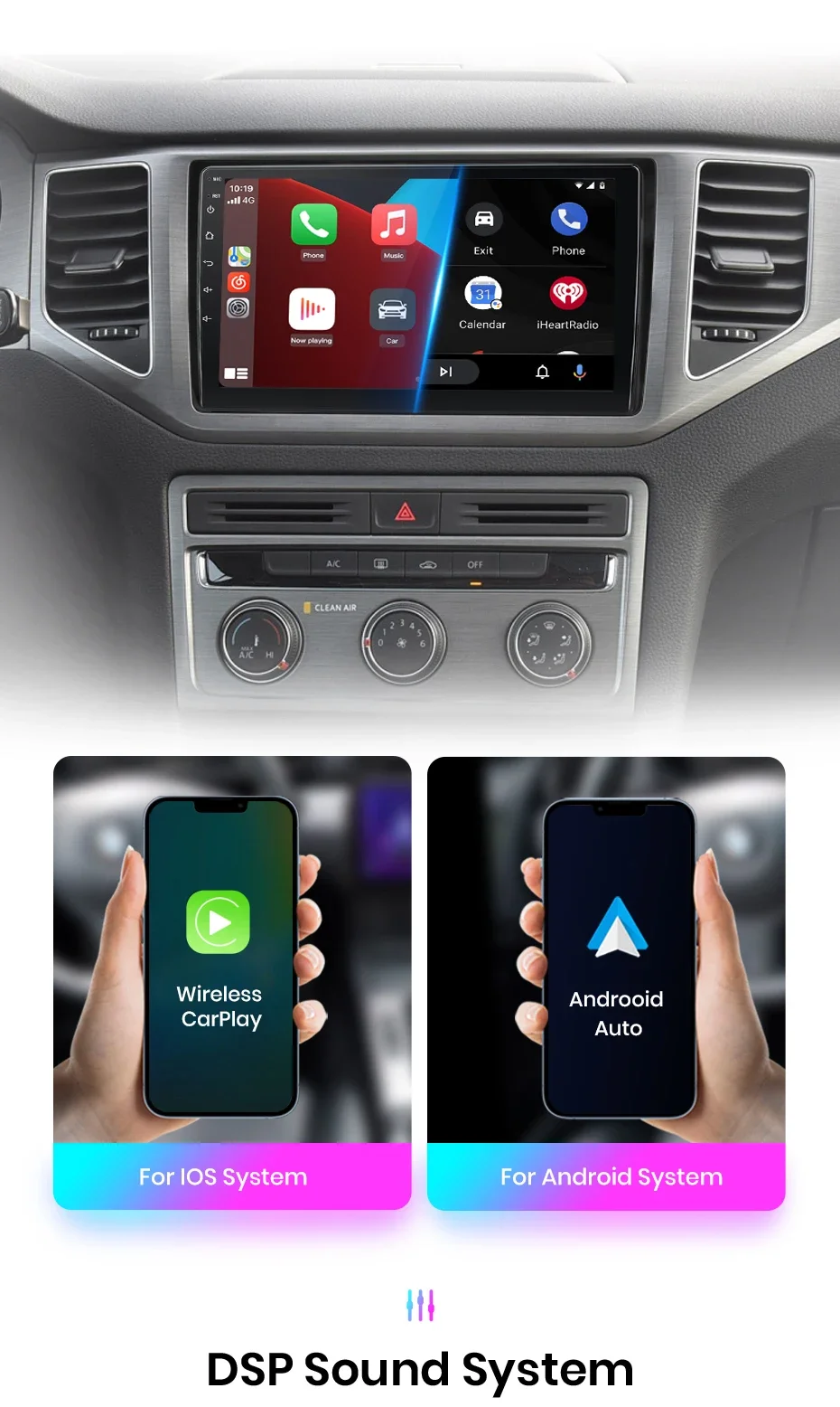 The Junsun radio supports Wireless CarPlay and Android Auto, allowing you to use smartphone functions and applications such as navigation, music, calls, and messaging during your journey. It provides a high-quality audio experience, enhancing the entertainment and convenience of your driving experience.