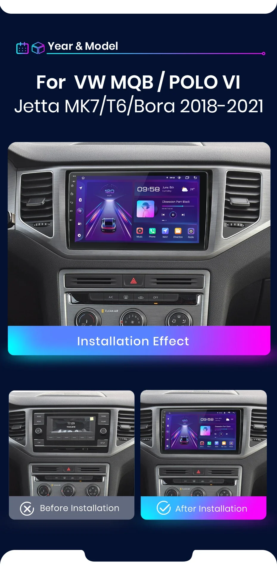>> Junsun V1 series radio For Volkswagen VW MQB POLO VI Jetta MK7 T6 Bora 2018-2021 Function