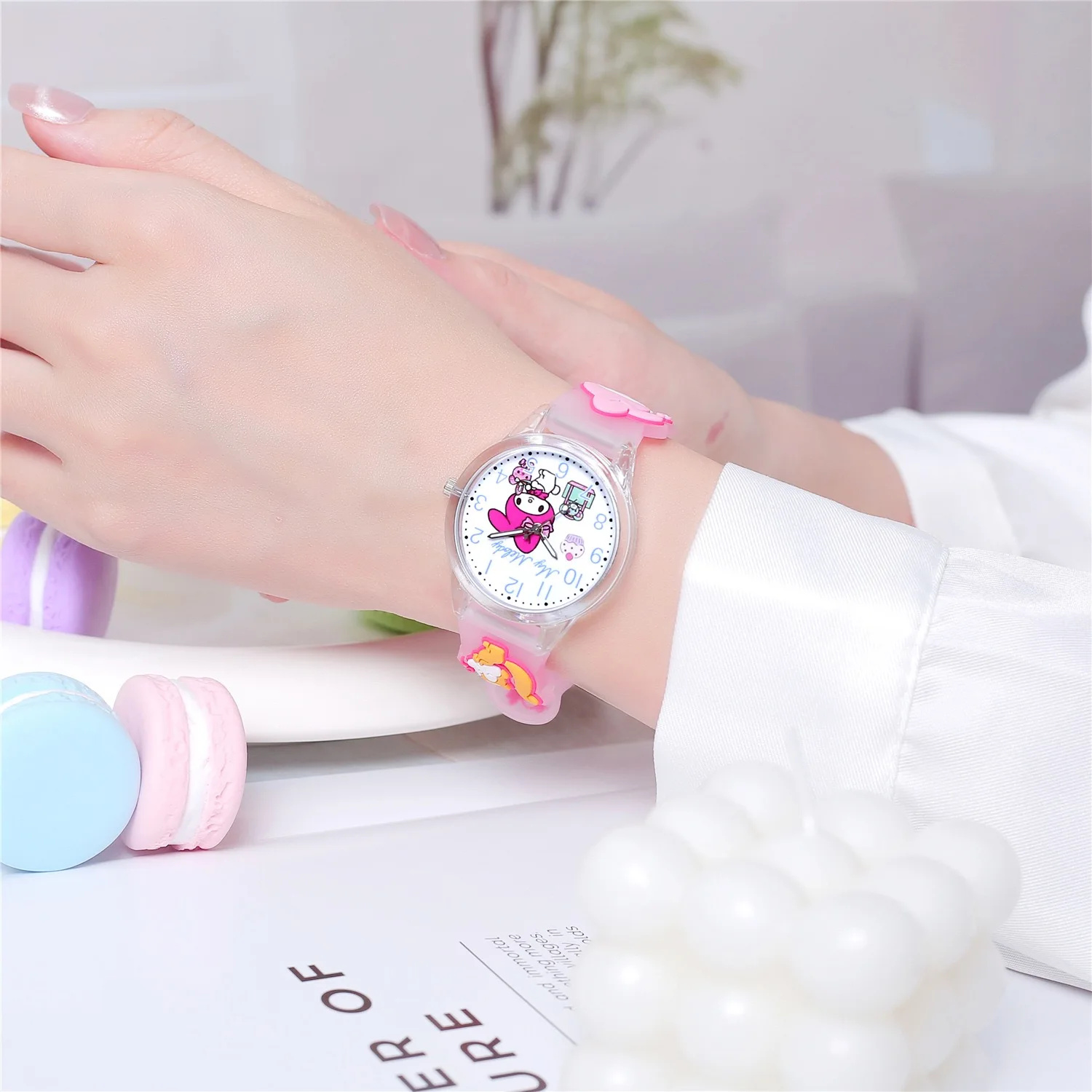 - 🐱 Design Iconicamente Fofo da Hello Kitty: O mostrador apresenta a querida Hello Kitty num cenário colorido e alegre, transmitindo a sua mensagem de amizade e bondade. É um design que resiste ao tempo e cativa gerações.